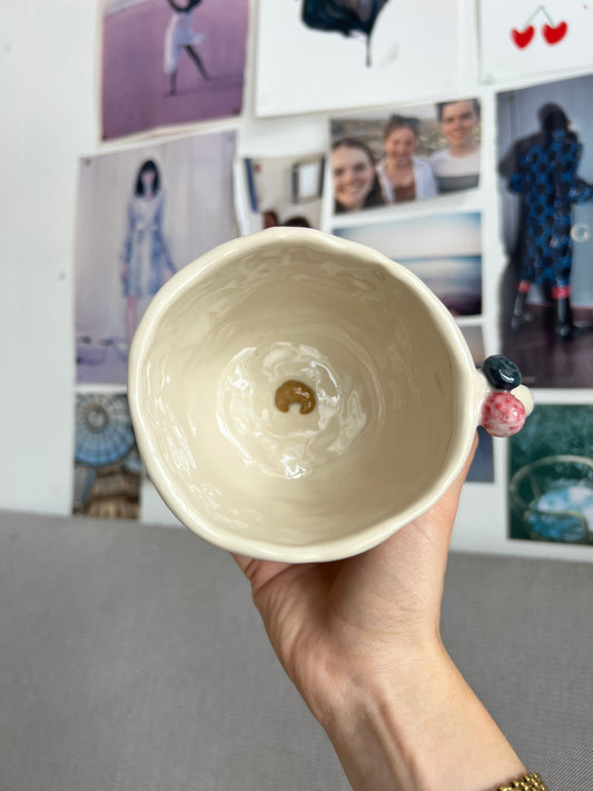 The sample and seconds sale consists of mugs and trinket dishes with some imperfections. (Almost) everything is still functional and safe to use, just not visually perfect!